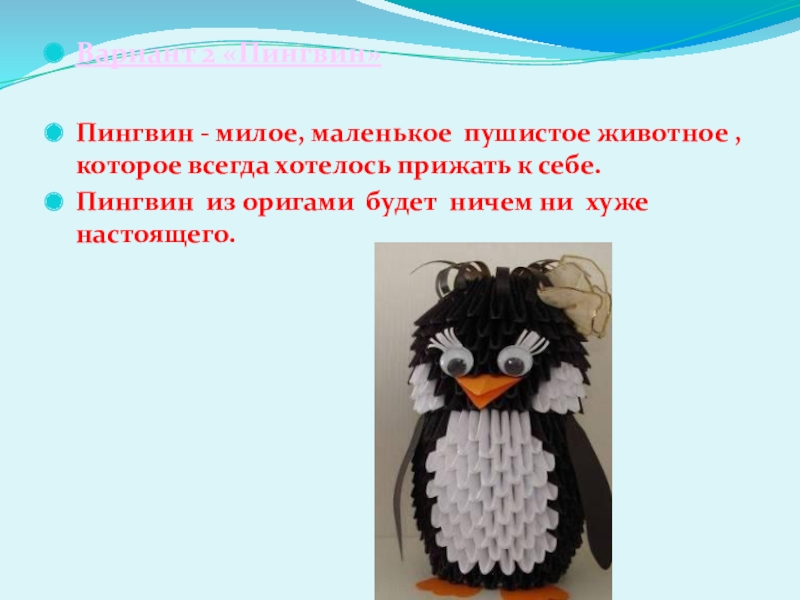 Пингвин из оригами будет ничем ни хуже настоящего.
