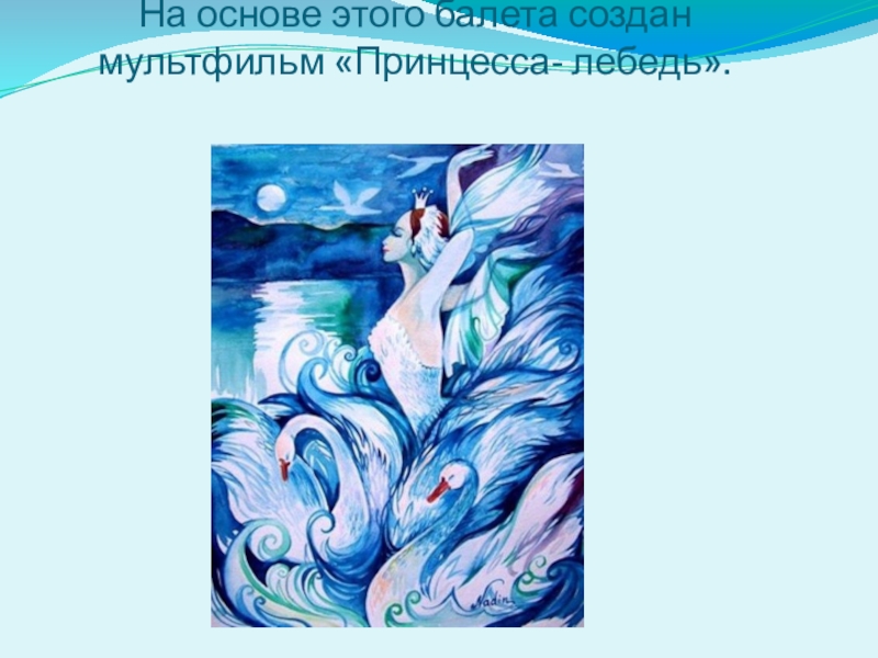 Слайд 20На основе этого балета создан мультфильм «Принцесса- лебедь».