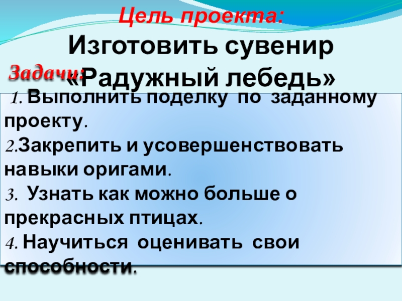 Слайд 7Свой выбор мы сделали в пользу поделки «Радужный лебедь». Эту красивую