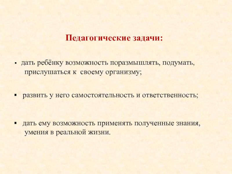 просто сумма усвоенных знаний, а стиль жизни, адекватное поведение в различных ситуациях, дети могут оказаться в неожиданных ситуациях на улице и дома, поэтому главной задачей является развитие у них самостоятельности и ответственности. Все, чему мы учим детей, они должны применять в реальной жизни.