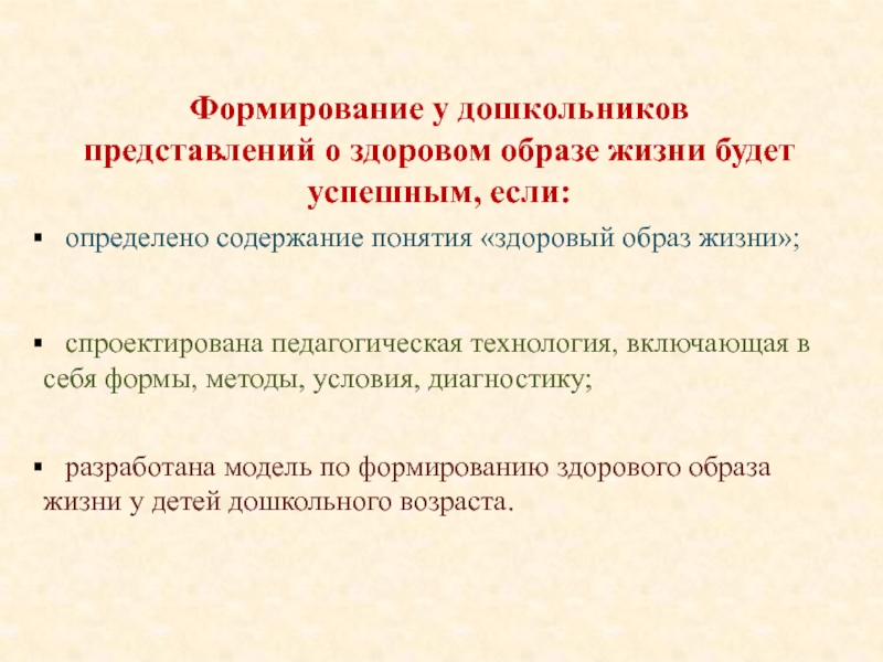 Формирование у дошкольников представлений о здоровом образе жизни будет успешным, если: