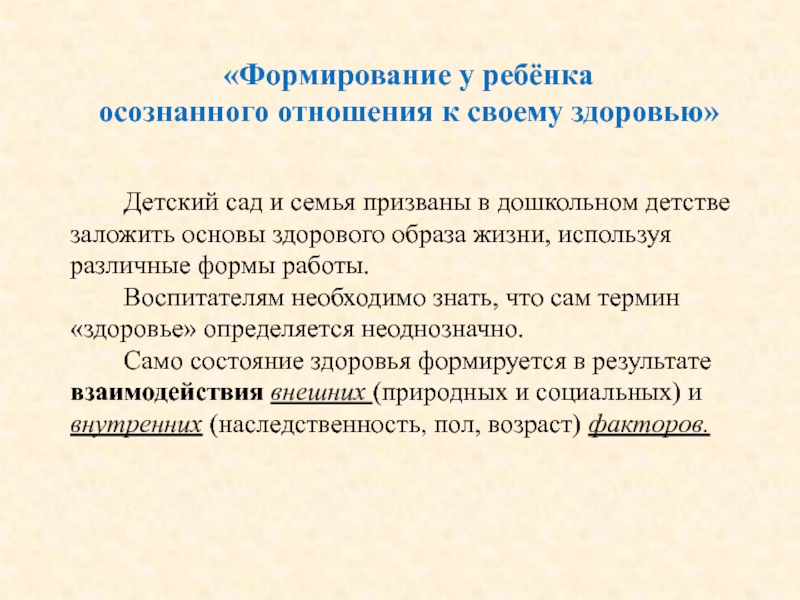 Воспитателям необходимо знать, что сам термин «здоровье» определяется неоднозначно.