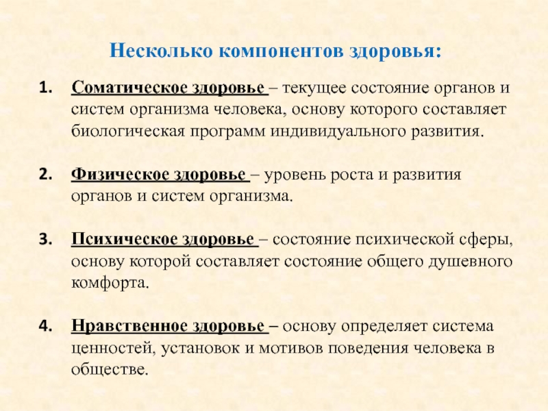 Нравственное здоровье – основу определяет система ценностей, установок и мотивов поведения человека в обществе.