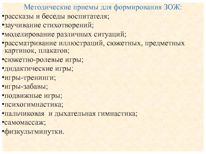 Слайд 6Методические приемы для формирования ЗОЖ:
