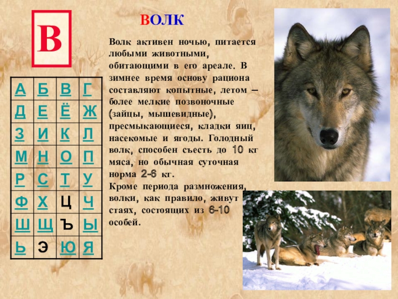 Кроме периода размножения, волки, как правило, живут в стаях, состоящих из 6-10 особей.