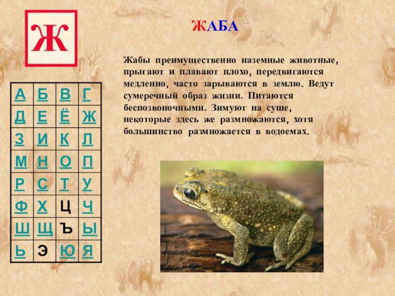 Жабы преимущественно наземные животные, прыгают и плавают плохо, передвигаются медленно, часто