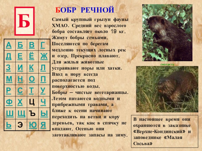 Самый крупный грызун фауны ХМАО. Средний вес взрослого бобра составляет около
