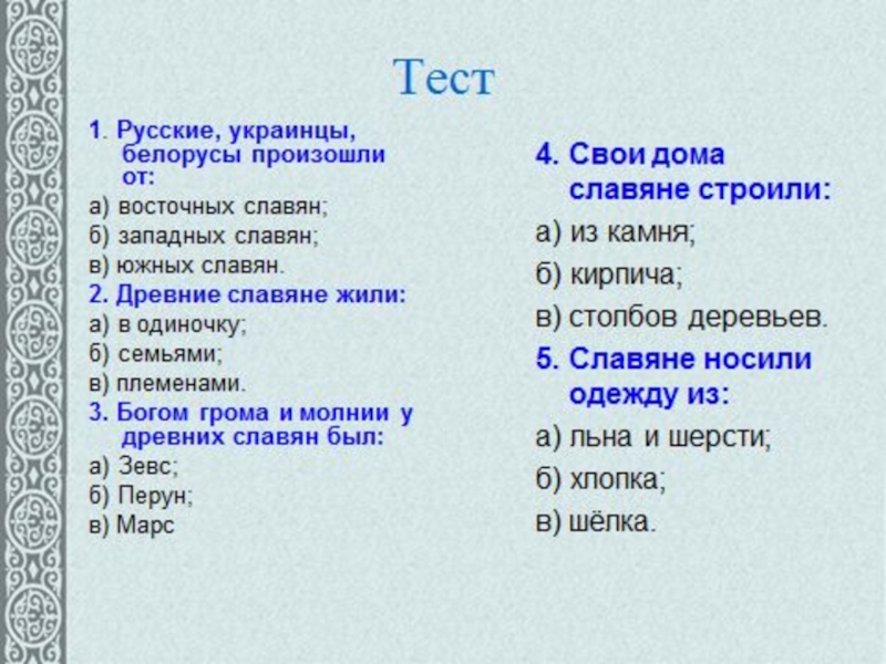 Занятия славянсобирательствоскотоводстворыболовствобортничествоземледелиеготовили пищуохоташитье гончарное дело