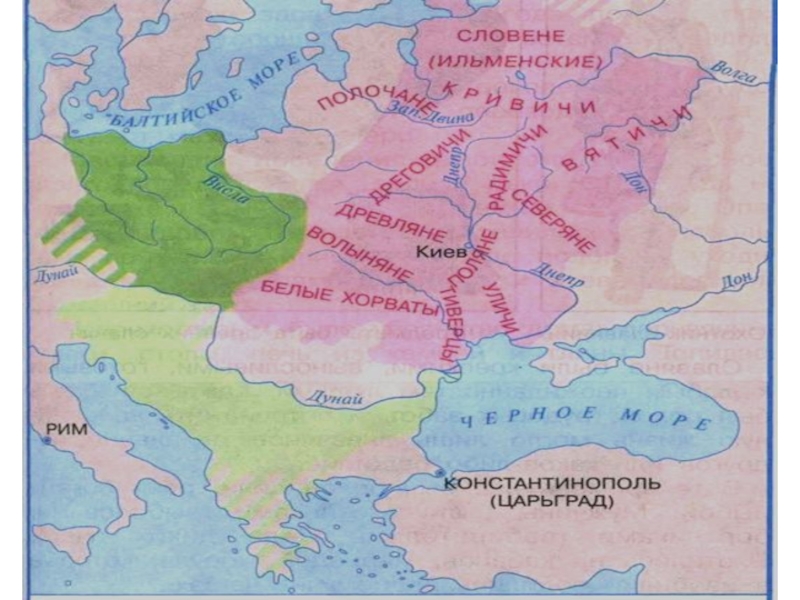 № 1 раскрасить карту поселения древних славян ,подписать названия морей и рек.