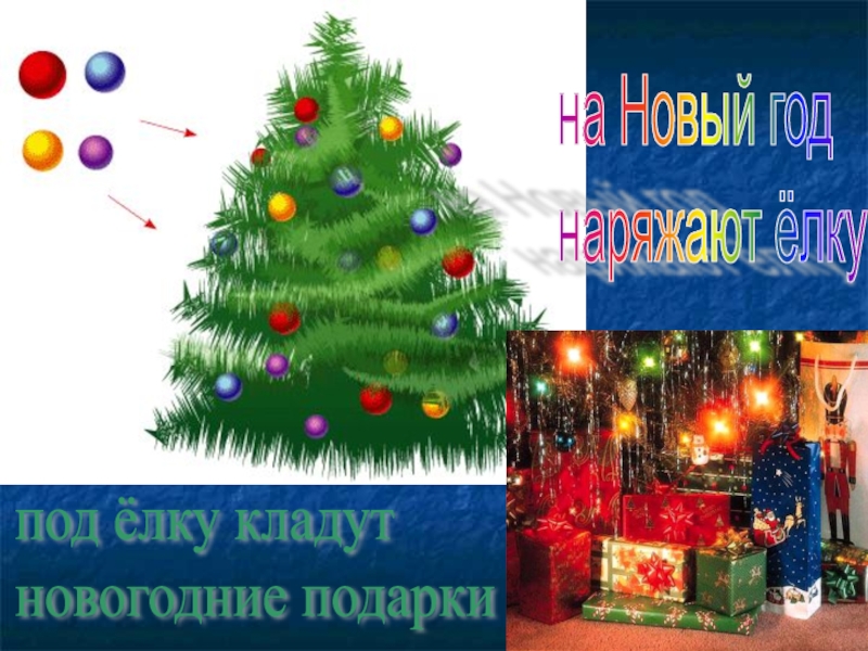 на Новый год  наряжают ёлкупод ёлку кладут  новогодние подарки