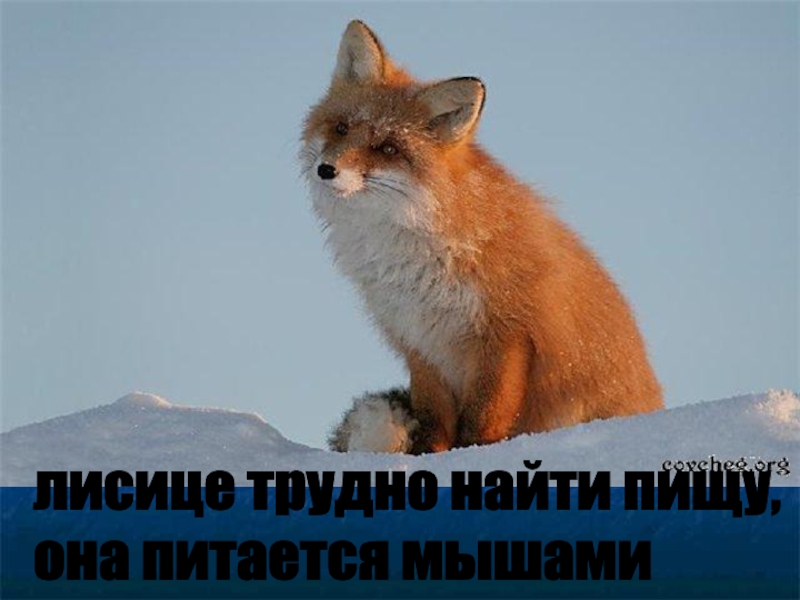 Слайд 22лисице трудно найти пищу, она питается мышами