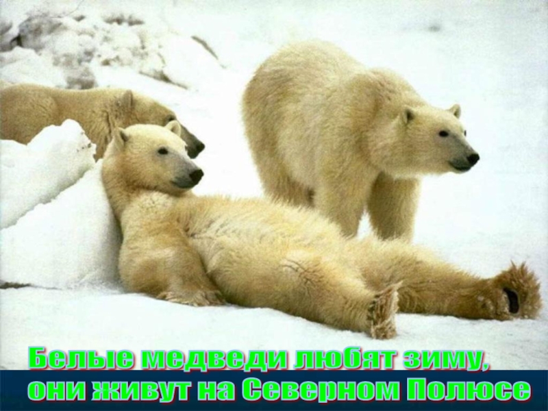 Слайд 24Белые медведи любят зиму, они живут на Северном Полюсе