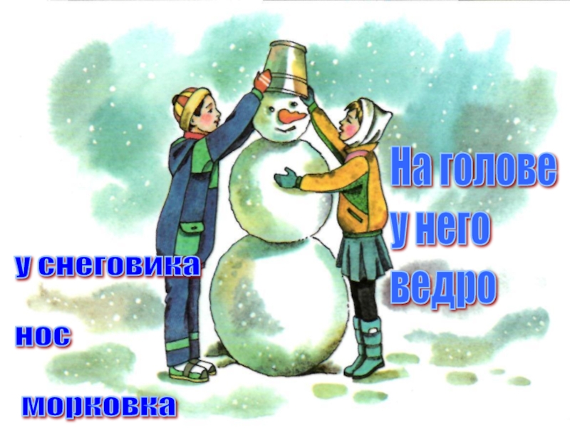 у снеговика    нос     морковкаНа голове  у него  ведро