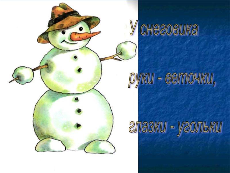 Слайд 11У снеговика руки - веточки, глазки - угольки