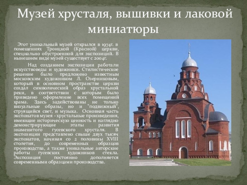 Слайд 70Музей хрусталя, вышивки и лаковой миниатюры