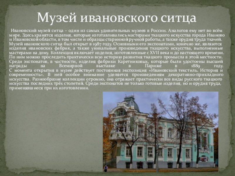 Слайд 53Музей ивановского ситца