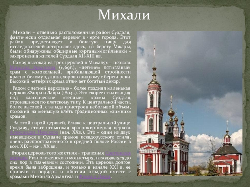 Михали – отдельно расположенный район Суздаля,