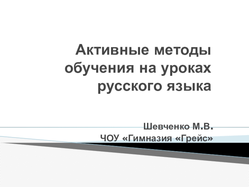Активные методы обучения на уроках русского языкаШевченко М.В.ЧОУ «Гимназия «Грейс»