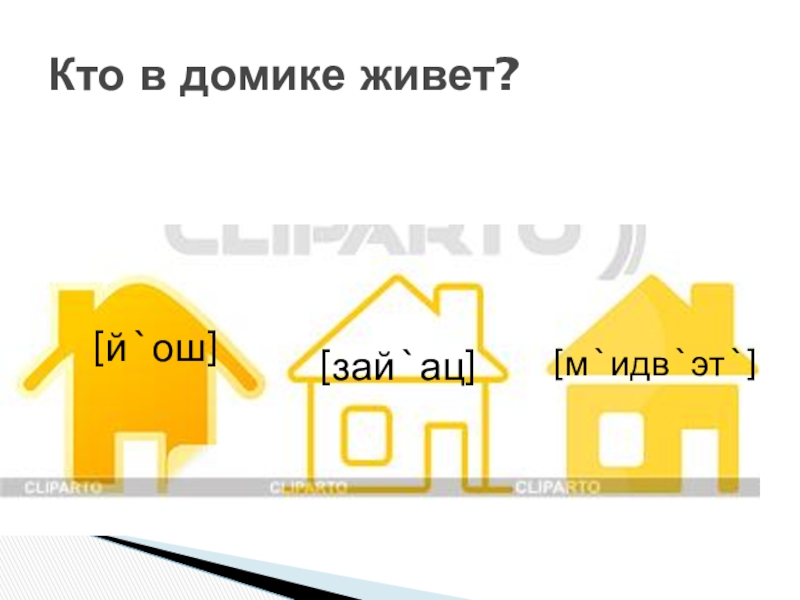 Кто в домике живет?[й`ош][зай`ац][м`идв`эт`]