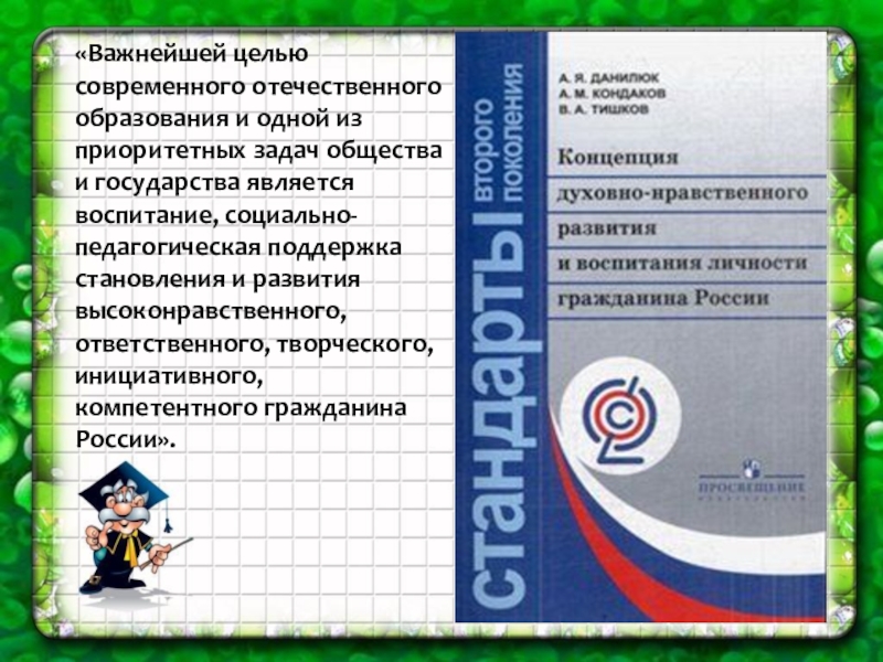 и государства является воспитание, социально-педагогическая поддержка становления и развития высоконравственного, ответственного, творческого, инициативного, компетентного гражданина России».