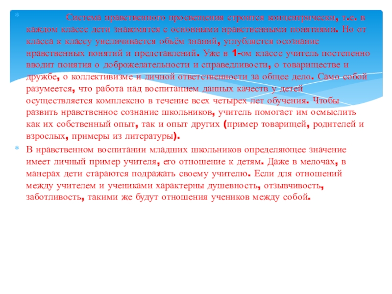 Слайд 10 Система нравственного просвещения строится концентрически,