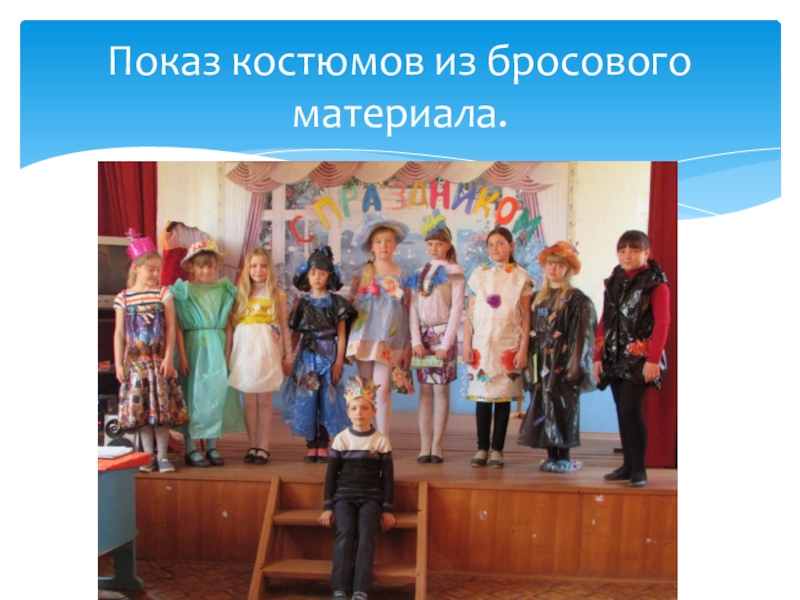 Слайд 25Показ костюмов из бросового материала.
