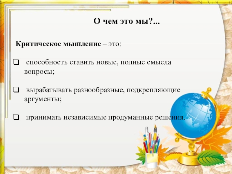 Это сайт презентаций, где можно хранить и обмениваться своими презентациями, докладами, проектами, шаблонами в формате PowerPoint с другими пользователями. Мы помогаем школьникам, студентам, учителям, преподавателям хранить и обмениваться учебными материалами.