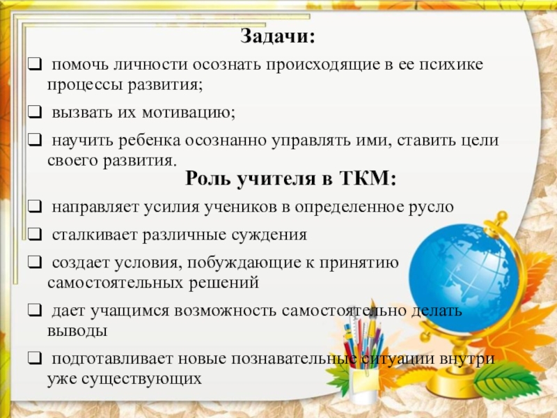 Роль учителя в ТКМ: