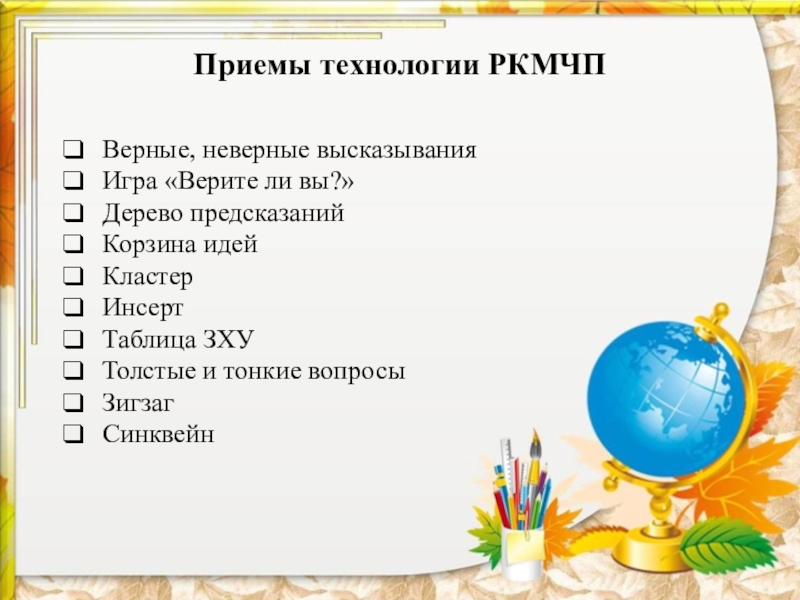 Приемы:
