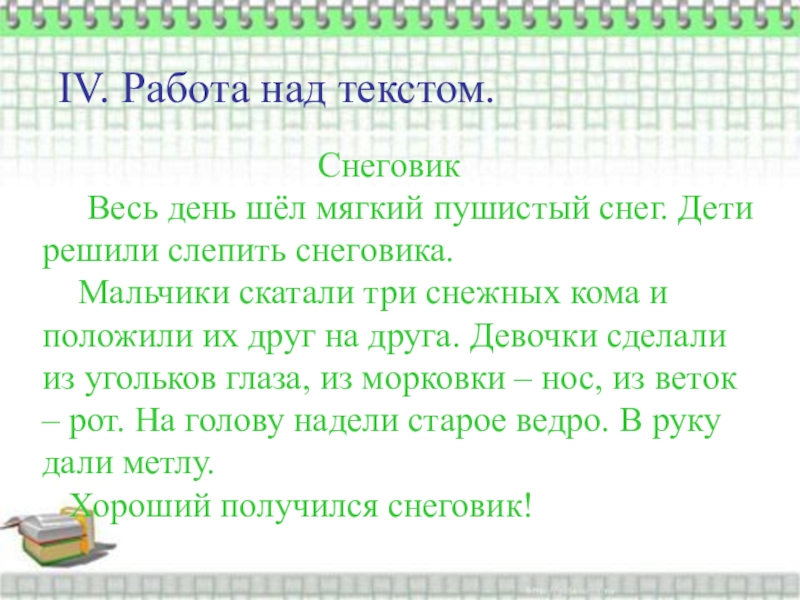 IV. Работа над текстом.