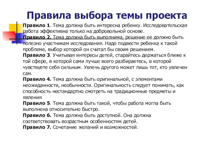 Правило 6. Тема должна быть доступной. Она должна соответствовать возрастным особенностям детей.