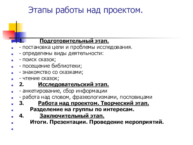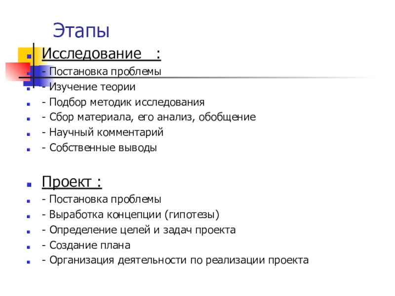 выделение целей и задач , выделение принципов отбора методик, планирование хода исследований, определение ожидаемых результатов.