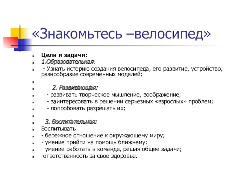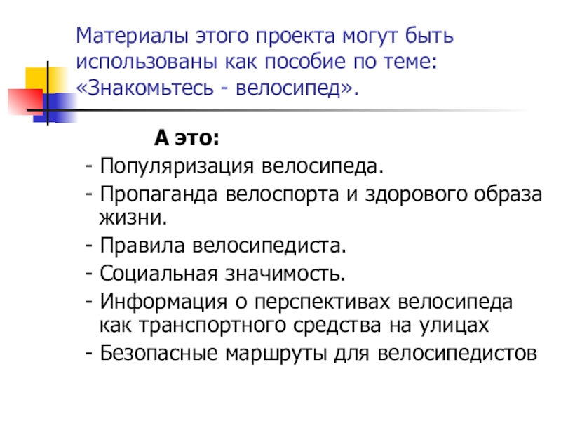 - Информация о перспективах велосипеда как транспортного средства на улицах