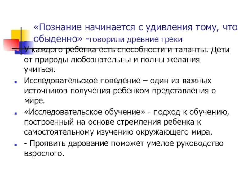 Слайд 3«Познание начинается с удивления тому, что обыденно» -говорили древние греки