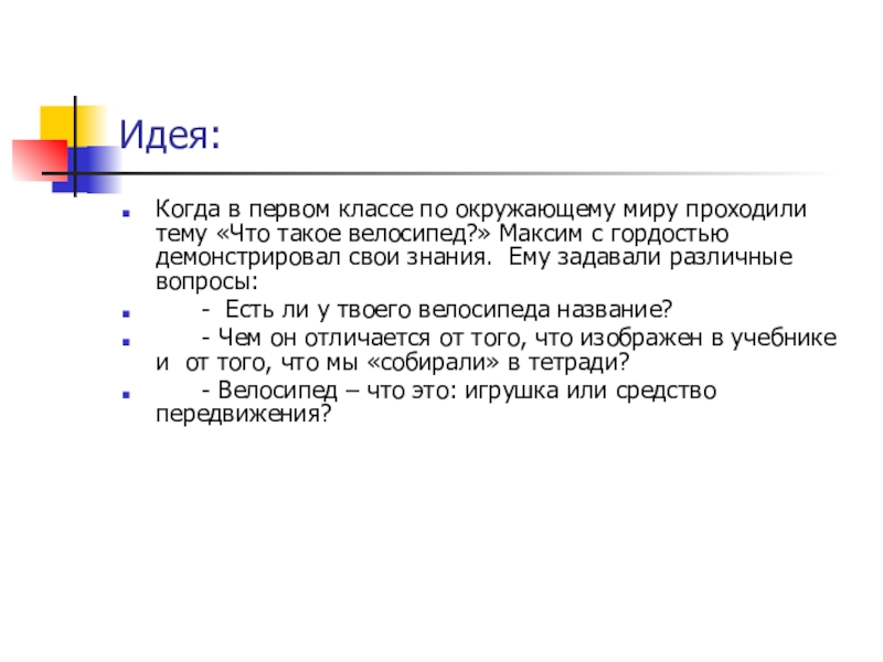 такое велосипед?» Максим с гордостью демонстрировал свои знания. Ему задавали различные вопросы: