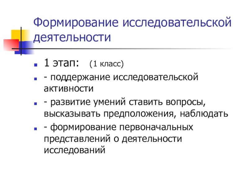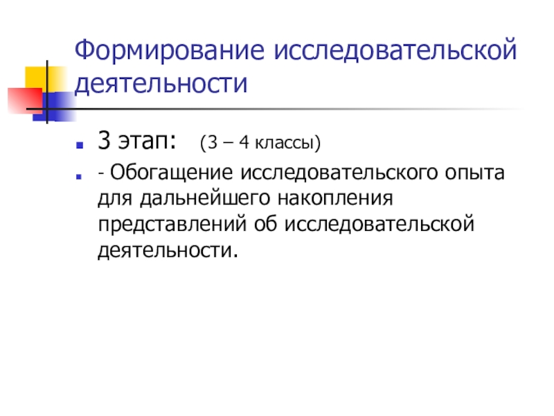 опыта для дальнейшего накопления представлений об исследовательской деятельности.