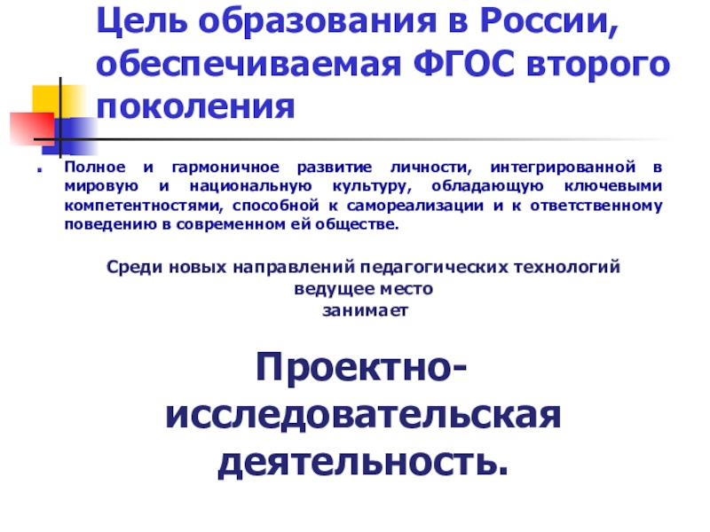 Слайд 2Цель образования в России, обеспечиваемая ФГОС второго поколения