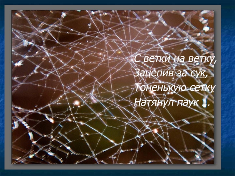 С ветки на ветку,Зацепив за сук,Тоненькую сетку Натянул паук …