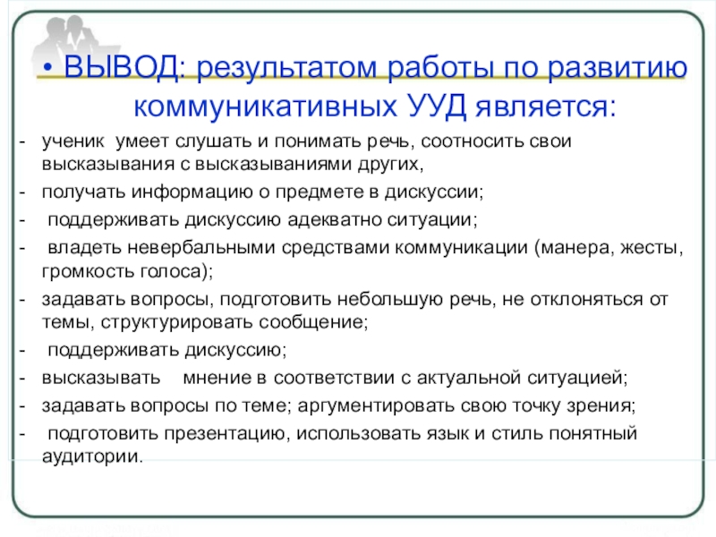 ВЫВОД: результатом работы по развитию коммуникативных УУД является: