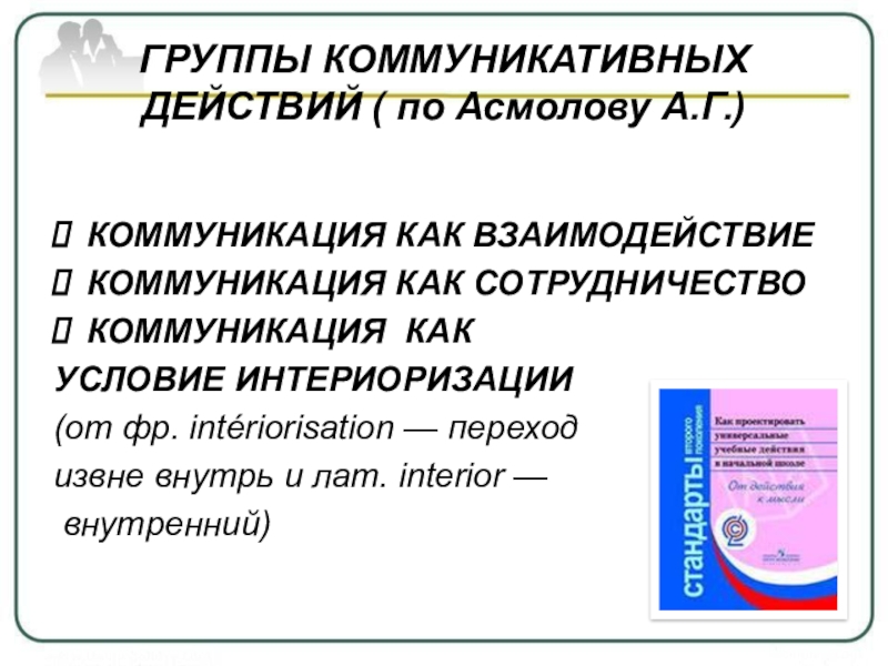 Слайд 20ГРУППЫ КОММУНИКАТИВНЫХ ДЕЙСТВИЙ ( по Асмолову А.Г.)