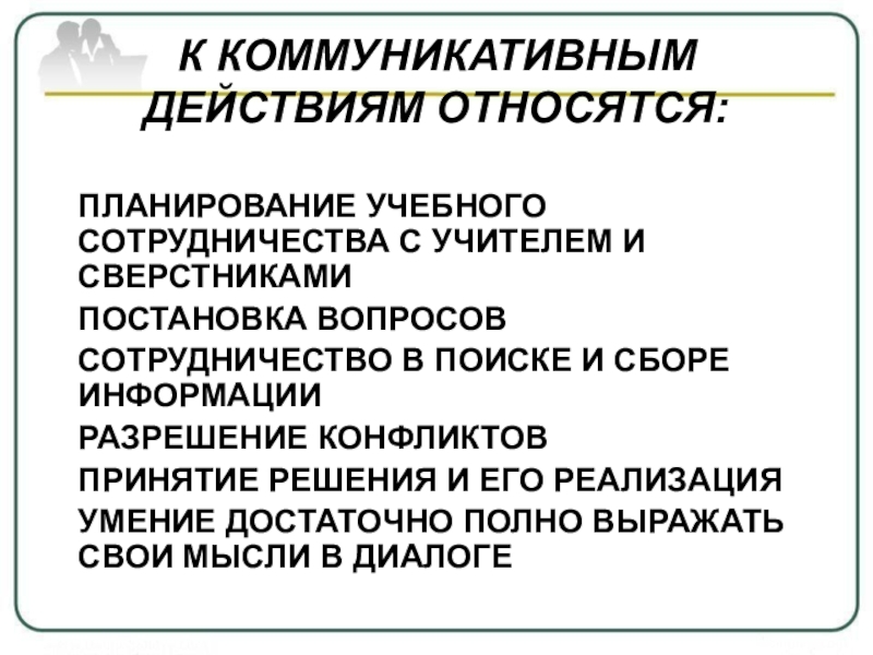 Слайд 21К КОММУНИКАТИВНЫМ ДЕЙСТВИЯМ ОТНОСЯТСЯ: