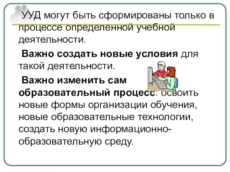 Слайд 18 УУД могут быть сформированы только в процессе определенной учебной деятельности.