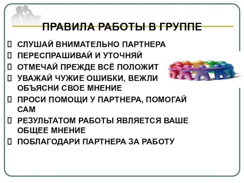Слайд 25ПРАВИЛА РАБОТЫ В ГРУППЕ