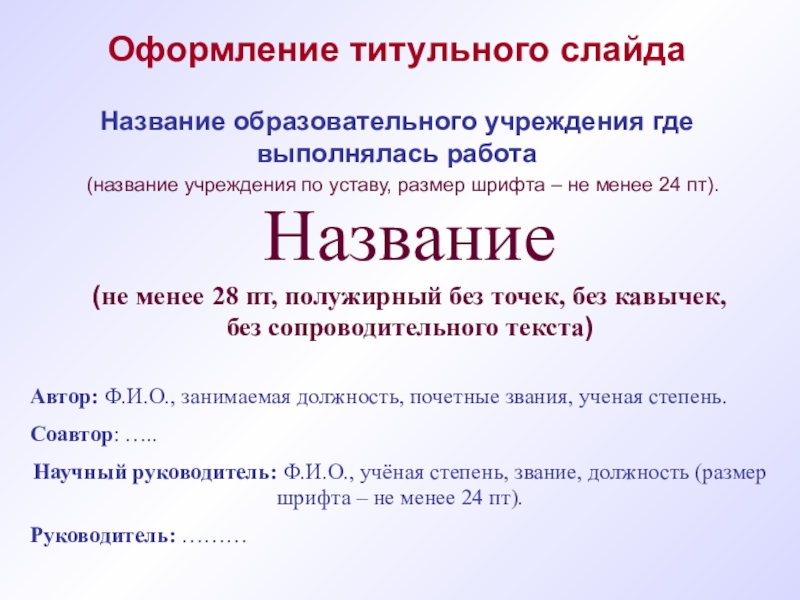 (название учреждения по уставу, размер шрифта – не менее 24 пт).