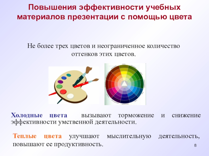 Теплые цвета улучшают мыслительную деятельность, повышают ее продуктивность.