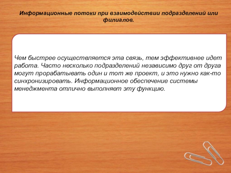 Информационные потоки при взаимодействии подразделений или филиалов.