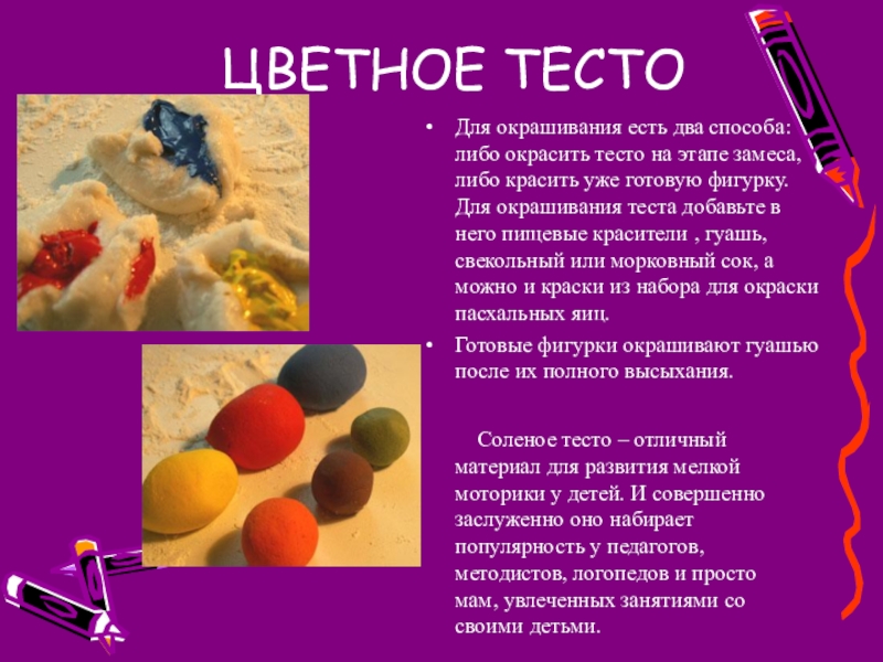 Соленое тесто – отличный материал для развития мелкой моторики у детей. И совершенно заслуженно оно набирает популярность у педагогов, методистов, логопедов и просто мам, увлеченных занятиями со своими детьми.