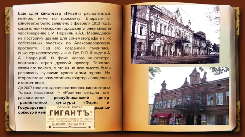Слайд 10Еще один кинотеатр «Гигант» располагался немного ниже по проспекту. Впервые о