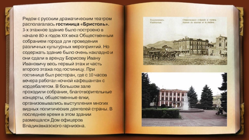 Слайд 12Рядом с русским драматическим театром располагалась гостиница «Бристоль». 3-х этажное здание