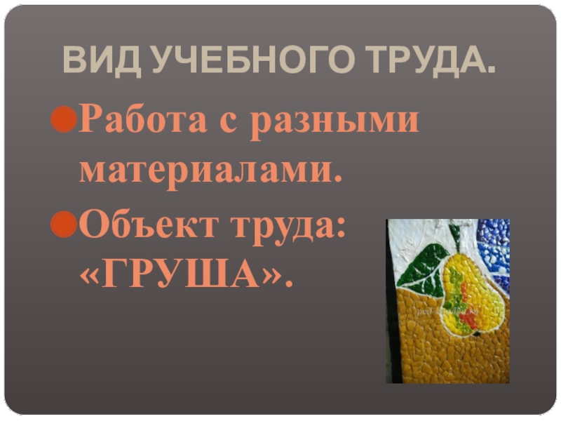ВИД УЧЕБНОГО ТРУДА.Работа с разными материалами.Объект труда: «ГРУША».